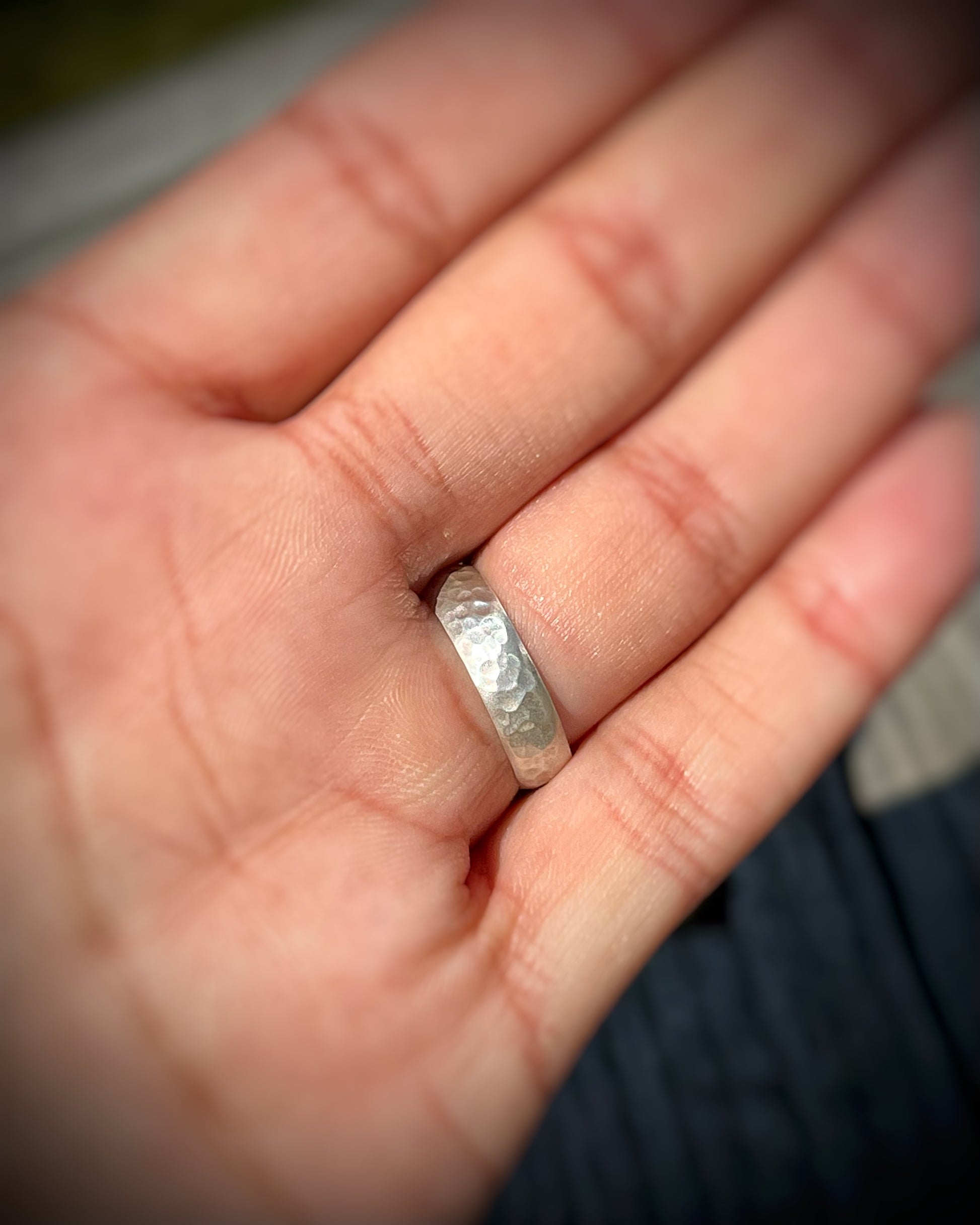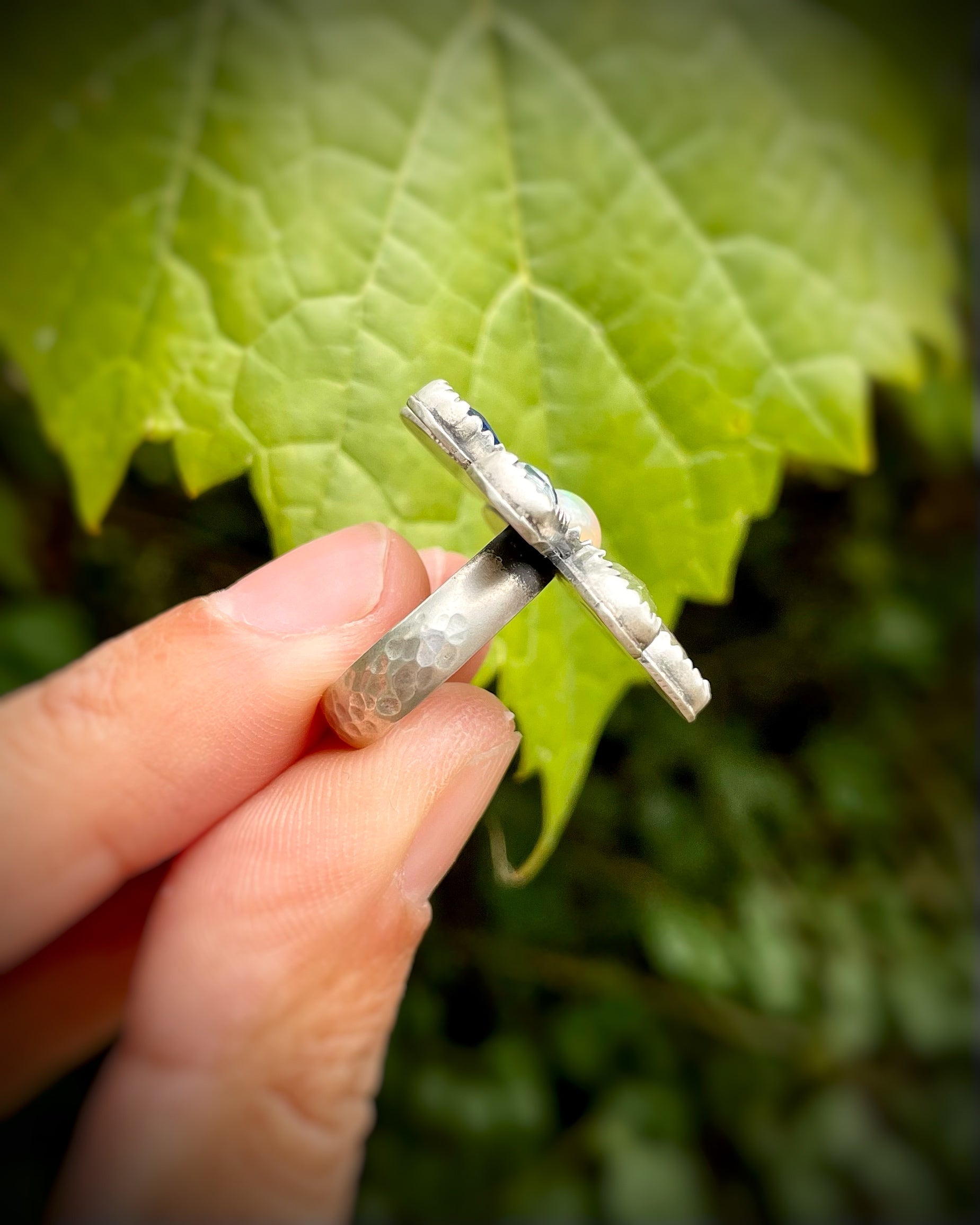 This one-of-a-kind piece is a size 5, making it a perfect fit for someone who loves unique, handcrafted jewelry with personality.